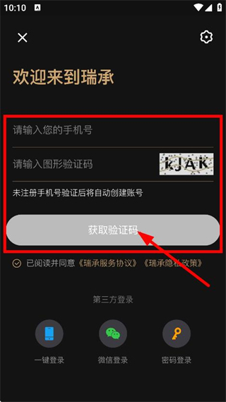 2、在瑞承主界面,点击底部的登录,进入登录页面。