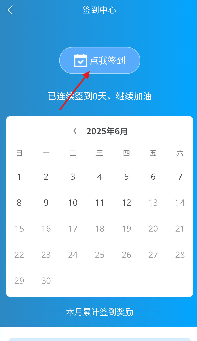 3、在签到页面,点击醒目的 “点我签到” 按钮,即可轻松完成每日签到任务。
