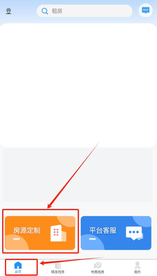 3、登录成功后回到首页,找到“房源定制”这一选项,点击它就可以开始筛选自己心仪的房子了。