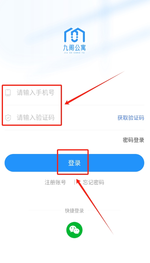 2、在登录页面输入手机号,待收到验证码后填入,即可成功登录账号。