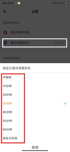 2在这里能找到“单次观看时长”的选项,点击该选项后,即可自行设定每次观看的具体时长。