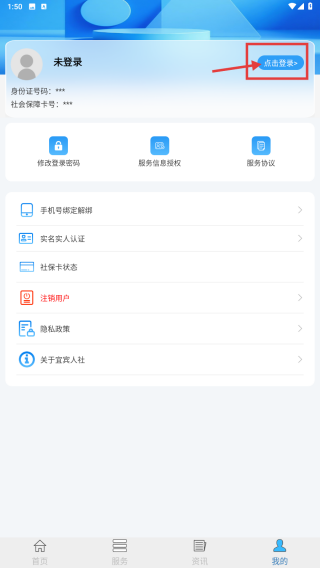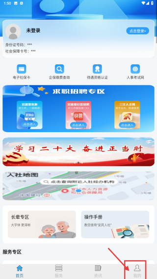 1首先启动宜宾人社应用程序,接着在界面底部找到并点击“我的”这一功能入口,随后系统将自动跳转至个人中心界面。