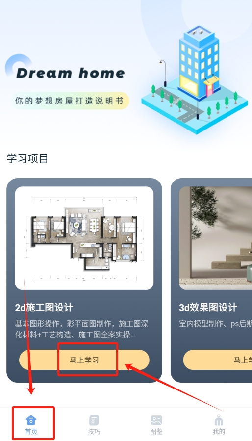 选定图纸后,页面会自动跳转,随后便能看到对应的配套课程,你可以跟着课程一步步学习设计。