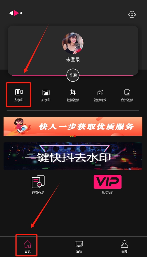 1、 启动小道木鱼软件后,首页的各项功能清晰呈现,直接点击“去水印”选项即可。