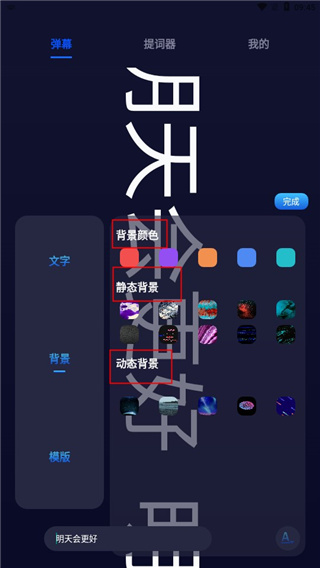 3、集弹幕还为用户提供了各类静态与动态背景,方便用户自由挑选心仪的进行使用。