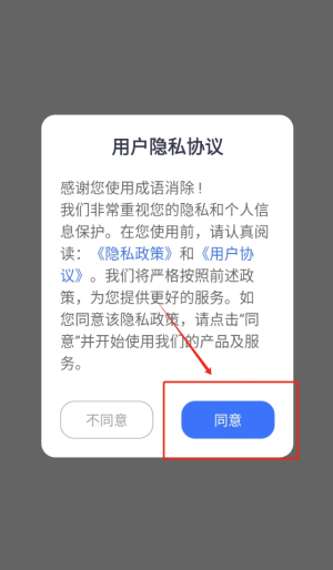 1、点击同意选项,即可顺利进入应用界面,准备开始有趣的答题体验。
