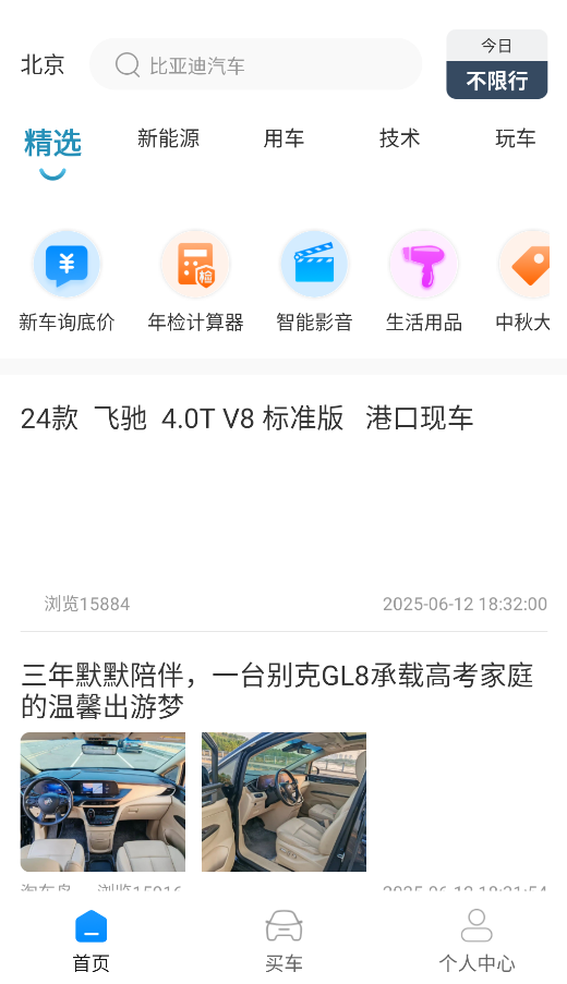 启动行车视界应用后,首页将呈现最新的汽车资讯、测评以及养护知识等相关内容。