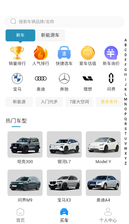 进入“买车”板块,你可以查看不同品牌、不同车型的详细参数配置与报价信息。