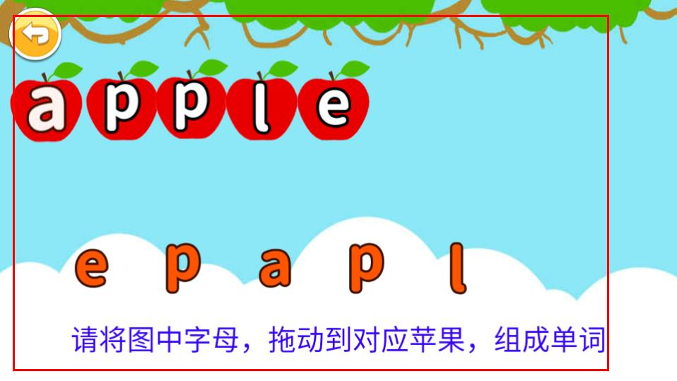 4开展字母拖拽互动游戏,把指定字母拖至匹配的苹果图案上,以此拼出单词“le”。