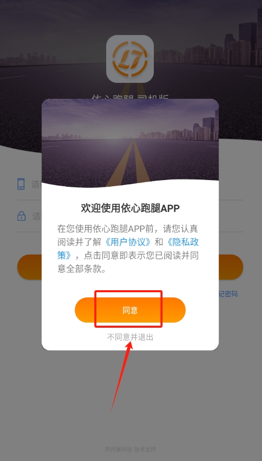 打开软件后,需先点击页面上的“同意协议”按钮,方可继续使用。