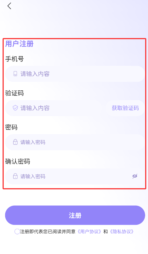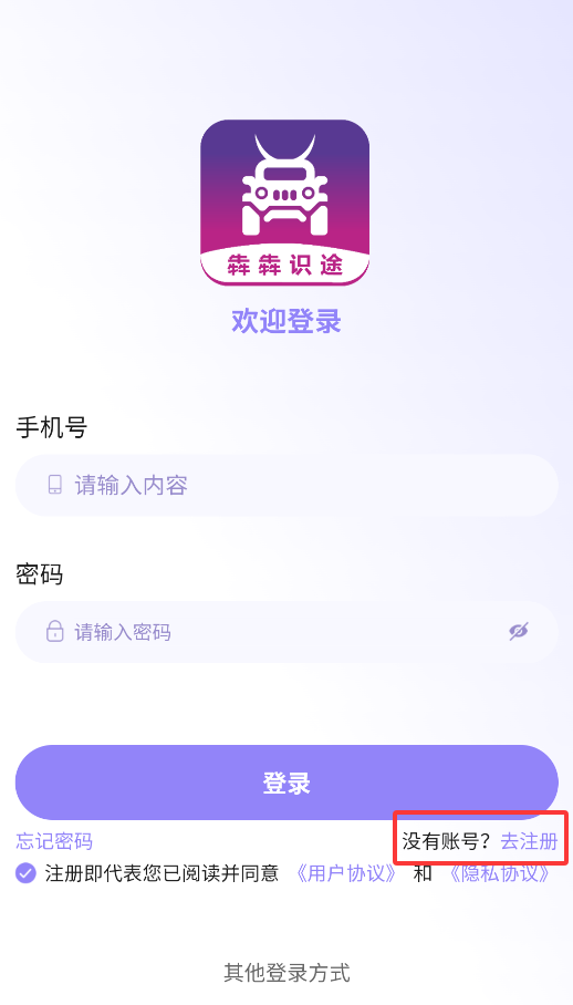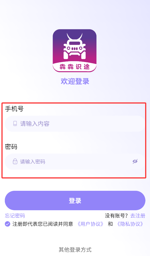 3、注册成功后返回登录页,输入已绑定的手机号和密码即可快速进入应用主界面。