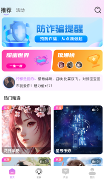 1、动态语音房间。支持千人同步在线,可自由切换文字与语音互动模式,每逢重要节日还会掉落限定红包雨活动。