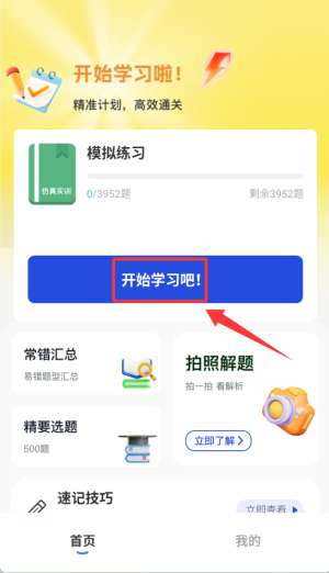 进入学法减分易后,在首页点击“开始学习”按钮,即可进入题库选择界面。