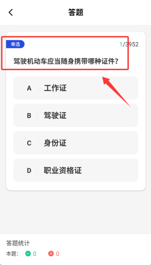 3、系统会随机生成题目,用户依据交通法规知识挑选正确答案来完成练习。