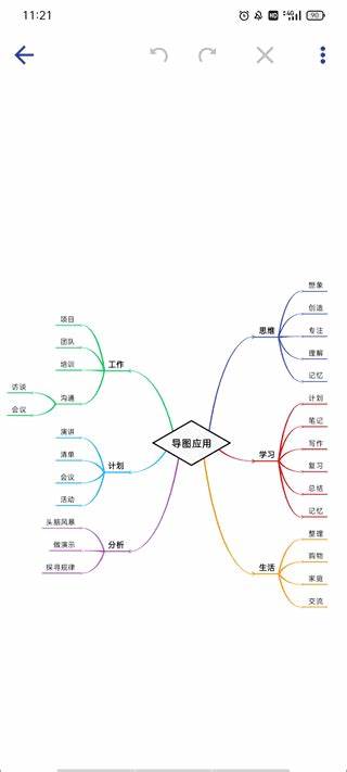 2、系统会自动生成一个基础的导图框架,你可以通过双指缩放屏幕,来查看导图的整体结构。