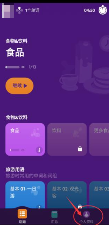 2、在软件首页中,点击右下角的“个人资料”,开启个人资料页面。