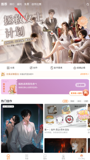 1、打开橙光小说应用后,在首页的导航栏中点击“排行”选项,该栏目会呈现出各类热门小说的榜单内容。
