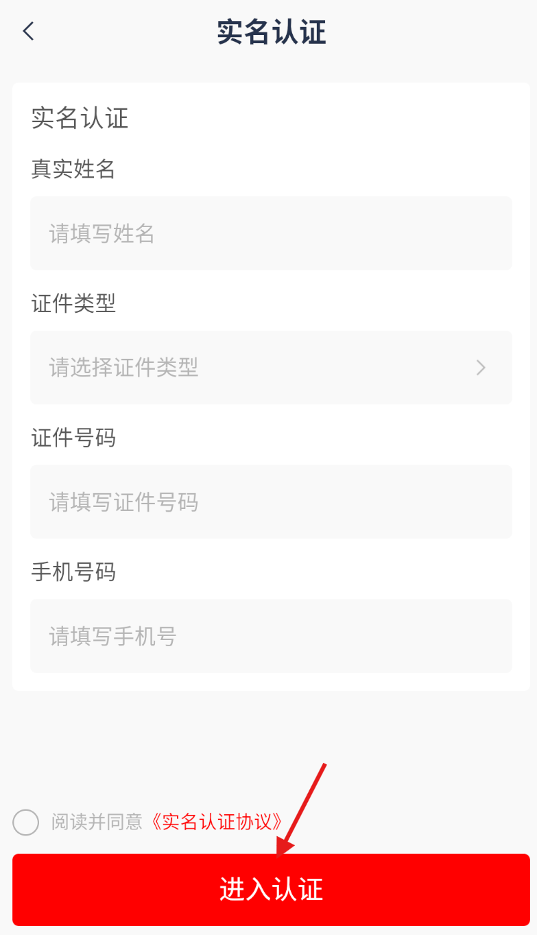 5、最后在认证页面输入身份信息,点击 “提交认证” 即可完成操作。