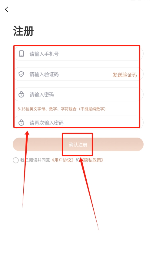 3、新用户注册时输入手机号获取验证码,填写验证码后设置密码即可完成账号注册流程。