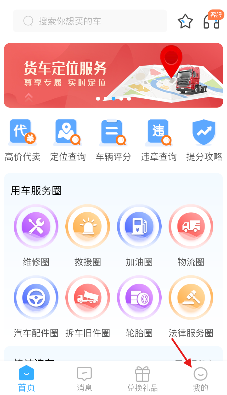 1、打开小义货车圈软件,点击底部导航栏 “我的” 进入个人中心。