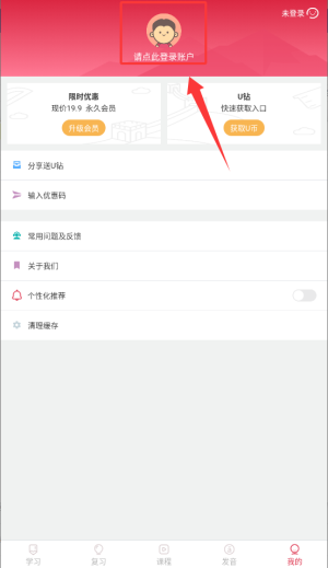 1、打开西语U学院应用后,点击底部导航栏中的“我的”图标,即可进入账户管理页面。