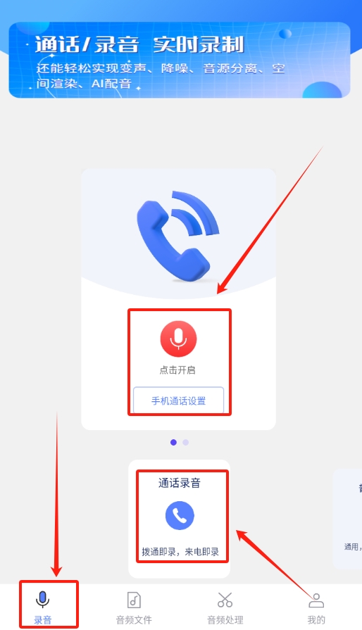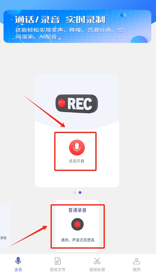 2、依据实际需求挑选录音模式:按照不同场景的需要选择通话录音或者普通录音,点击即可启动音频录制。