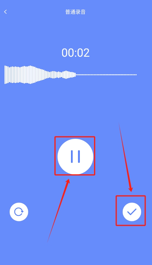 3、进入普通录音界面后,会看到醒目的“开始”按钮,点击该按钮即可启动录音;录音完成后,点击界面上的勾号,就能完成保存操作。
