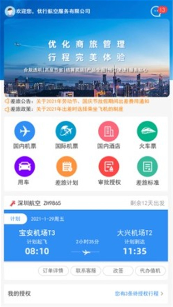 1、差旅预订模块覆盖机票、酒店、用车等全场景服务,支持智能比价与组合推荐。