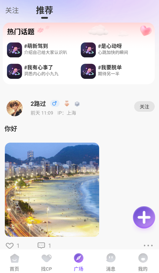 1、智能速配系统。借助三观测试与兴趣问卷构建用户画像,每日推送契合度达标的潜在好友清单。