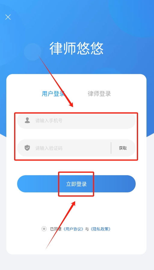 2、进入登录页面后,请先输入您的手机号码,接着获取并准确填写收到的验证码,确认信息无误后点击登录按钮即可。