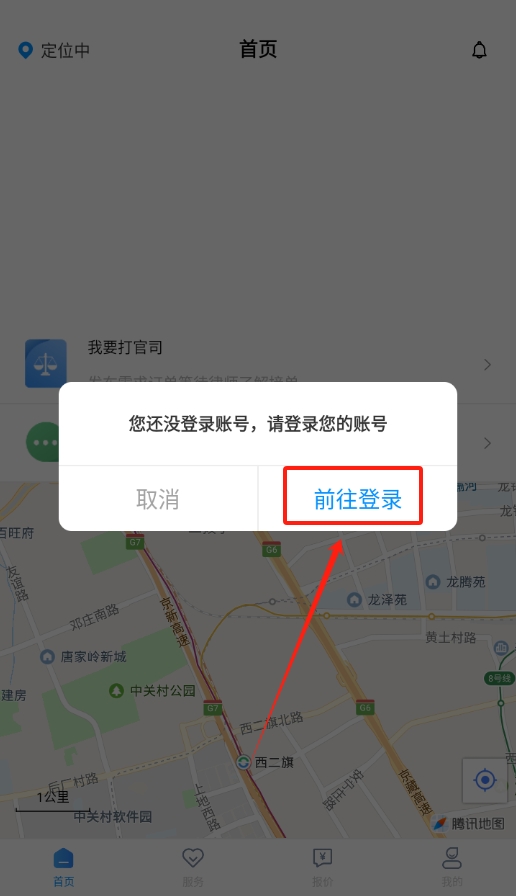 1、启动律师悠悠软件,在首页醒目的地方找到“前往登录”按钮,点击该按钮开启登录操作流程。