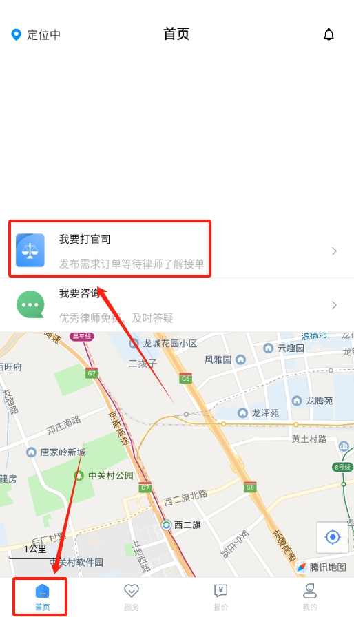 2、依据自身需求挑选法律服务:根据自己的实际需要,在平台首页选择律师咨询、案件委托等对应的服务类别。