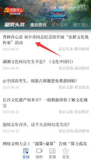 1、启动星辰头条后,在首页导航栏选择"资讯"频道,这里实时更新各类热点新闻内容。