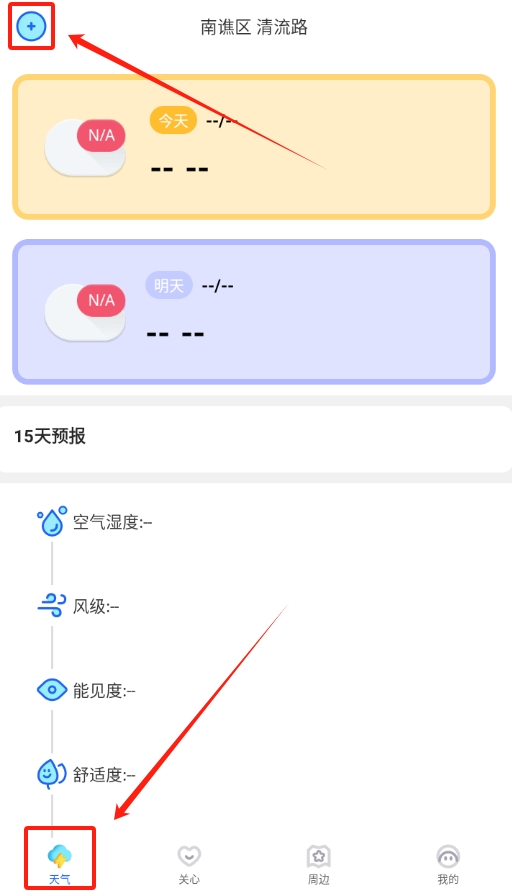 2、在弹出的菜单中,点击底部的加号选项,以便输入你想要关注的地点。
