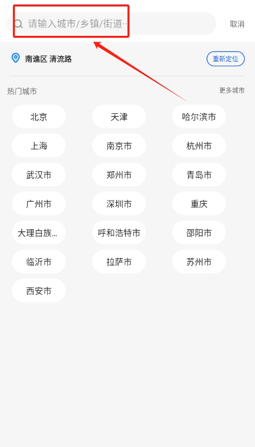 3、在搜索框中输入城市名称,输入完成后点击确定,该城市的天气信息就会添加到你的列表中。