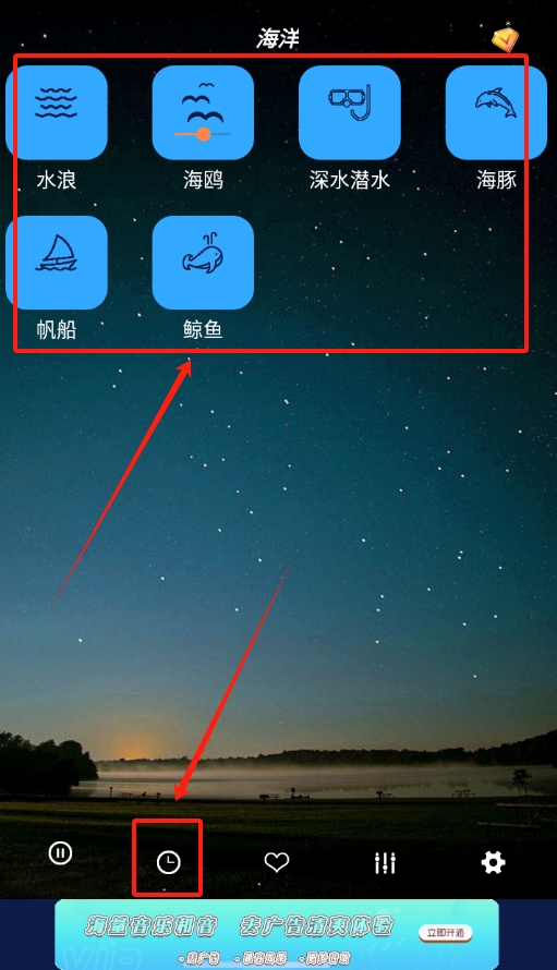 2、找到你想听的助眠音乐后直接点击播放,如果需要定时,只需点击界面上的时钟图标即可。