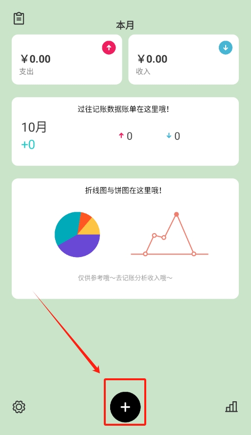1、启动呼噜记账应用,在界面底部找到醒目的加号按钮,点击它就能开启记账的第一步。