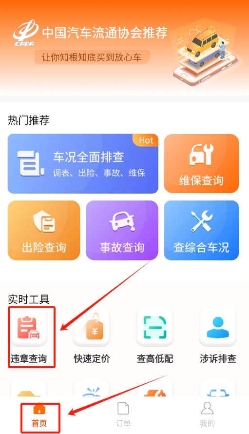 2、登录成功后回到首页,找到违章查询的入口,直接点击进入准备查询违章。