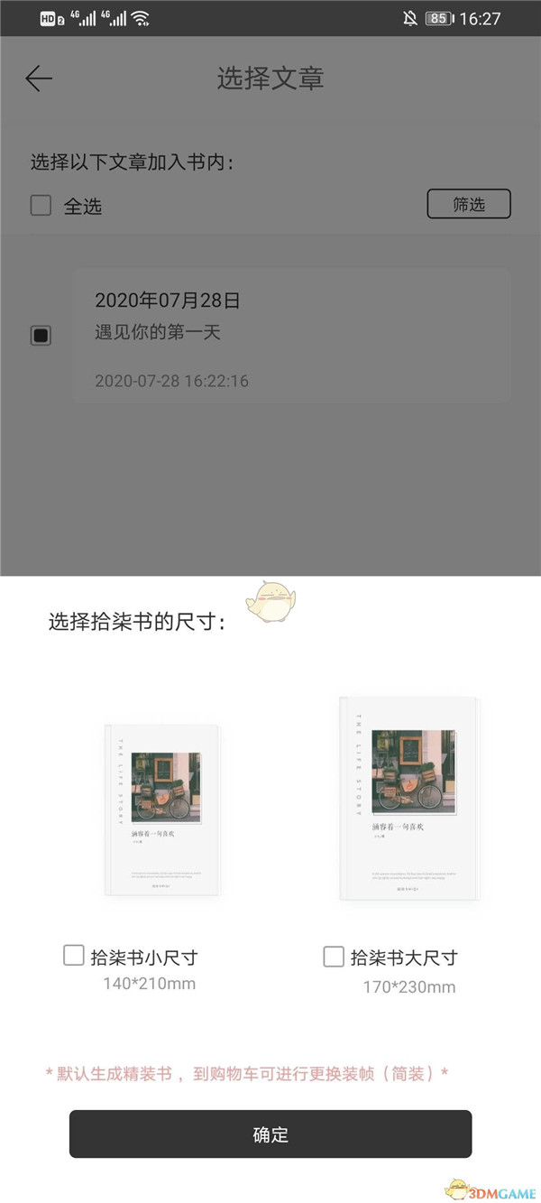 4、确定后选择书籍尺寸,选择一个喜欢的即可。