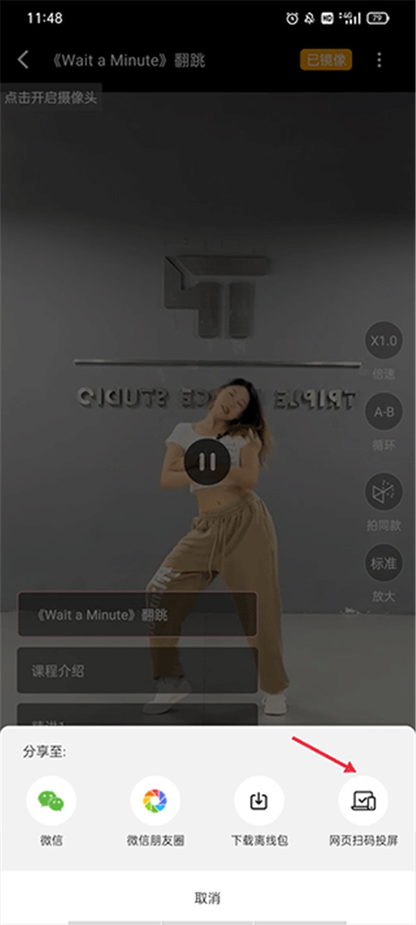 3、在弹出的功能弹窗中,点击网页扫码投屏。