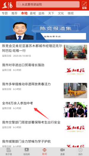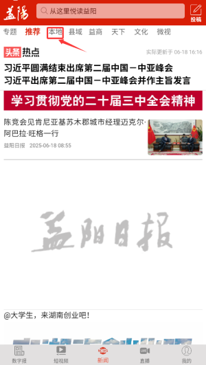 进入大益阳平台后,在首页的导航栏中找到并点击“本地资讯”栏目,该栏目会每日更新益阳地区的各类新闻动态。