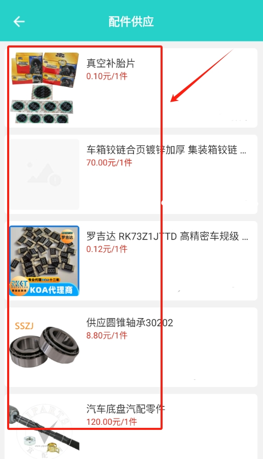 进入后可以看到各类汽车配件,找到你想要购买的那一款,点击进入商品详情页面。