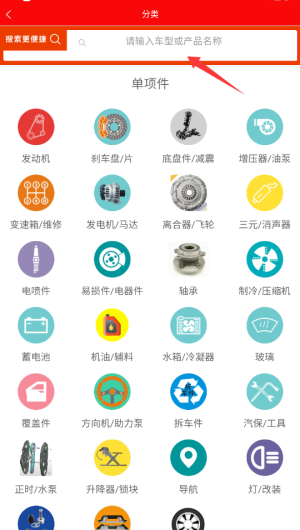 1、进入印象资讯后,在首页顶部导航栏找到搜索图标并点击,输入目标配件的名称或者车型相关关键词。