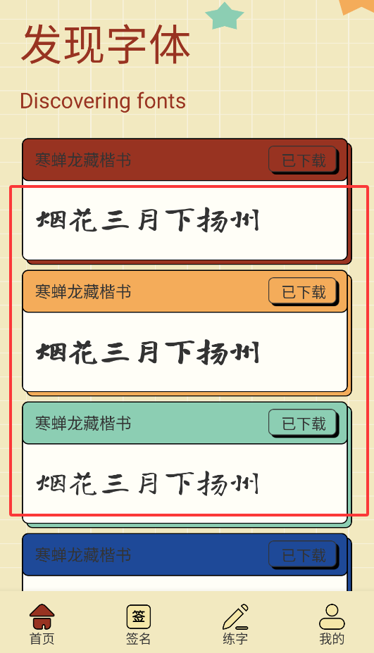 2、字体资源丰富且专业度高,尤其是商务签名模块,备受职场人士的喜爱与认可。
