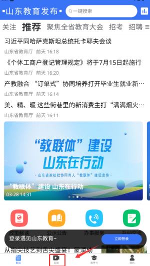 进入山东教育发布平台后,在首页的导航栏里找到并点击“视频”栏目,该栏目整合了多种与教育相关的视频资源。