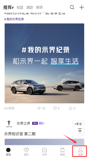 启动示界应用后,在首页的右下角位置找到“我的”图标,点击该图标即可进入账户管理页面。