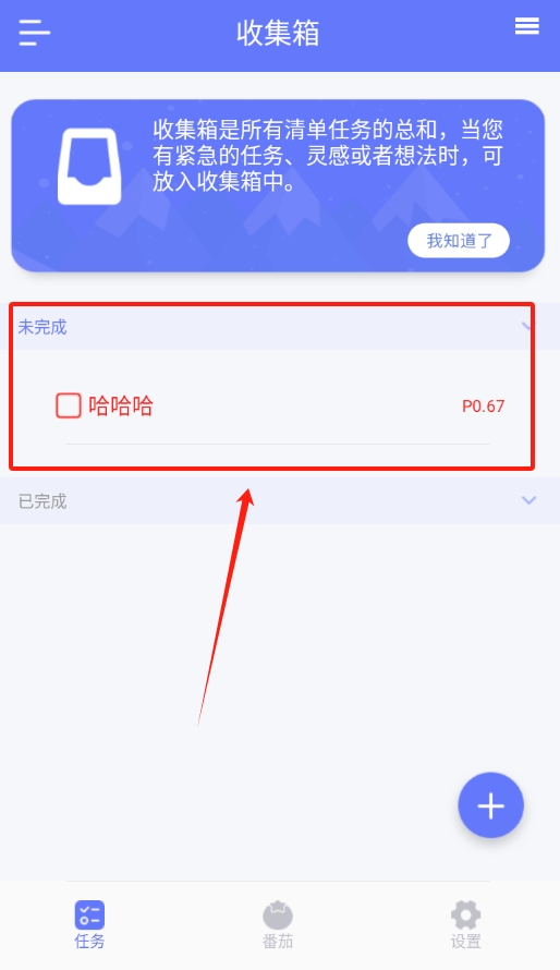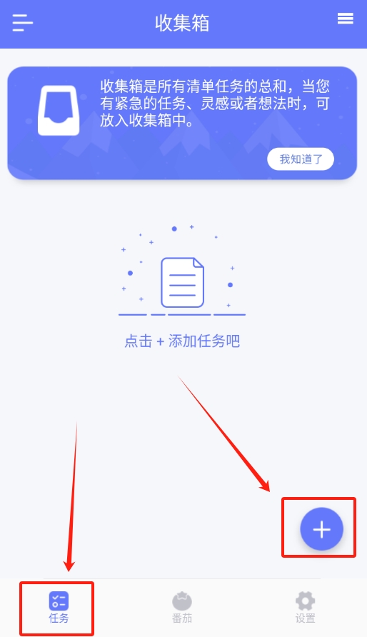 1、打开番茄备忘清单软件,映入眼帘的便是首页,在页面右下角找到显眼的加号,果断点击它。