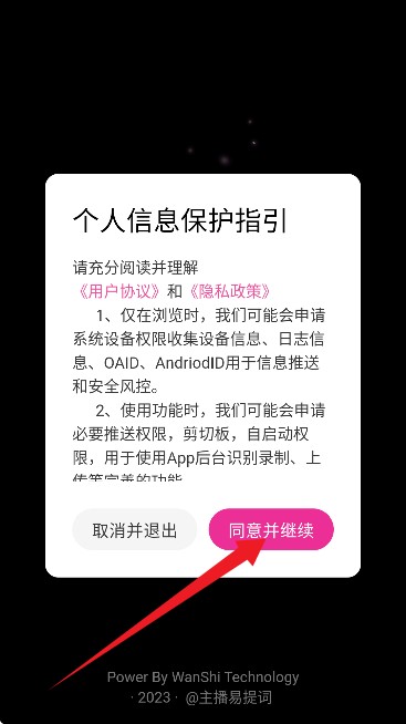 2、进入后,请同意用户协议和隐私政策。