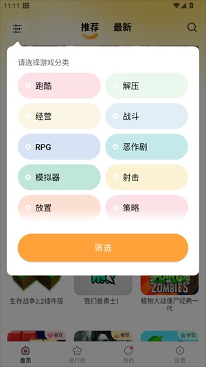2、提供多种游戏分类,方便你选择感兴趣的类型。