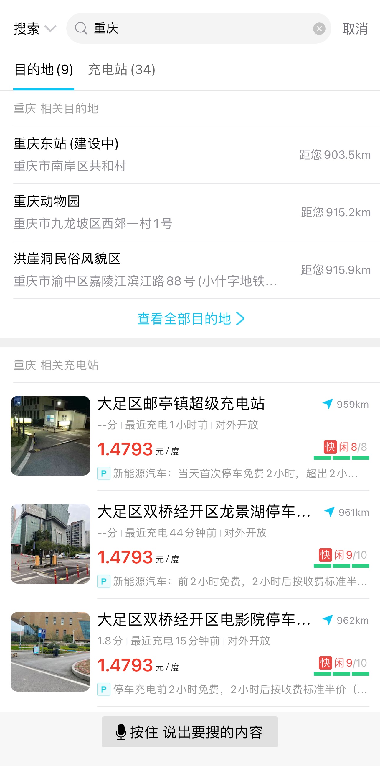 2、在地图标注里挑选离得最近的充电站点,查看其剩余桩位情况以及充电类型(快充或慢充)。